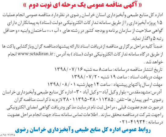 آگهی مناقصه عمومی یک مرحله ای نوبت دوم
