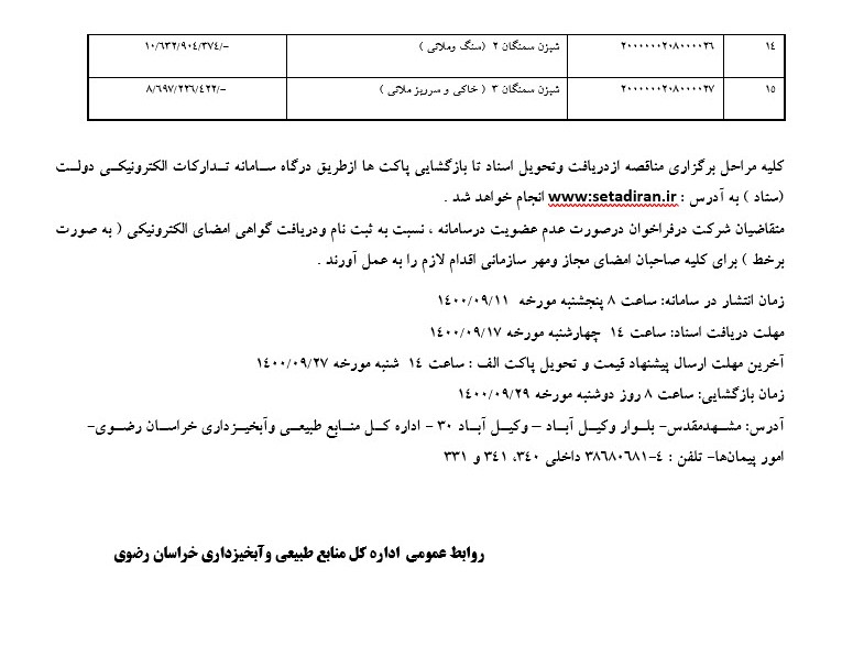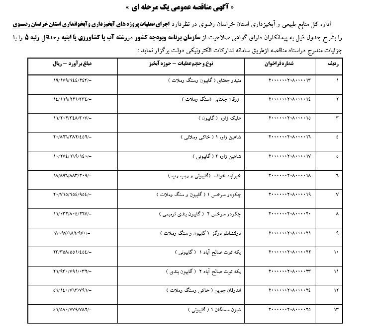 « آگهی مناقصه عمومی یک مرحله ای »