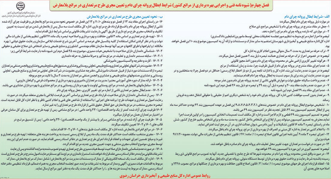 فصل چهارم (شیوه نامه فنی و اجرایی بهره برداری از مراتع کشور ؛ چاپ روزنامه خراسان 30 شهریور 99 ص 10)