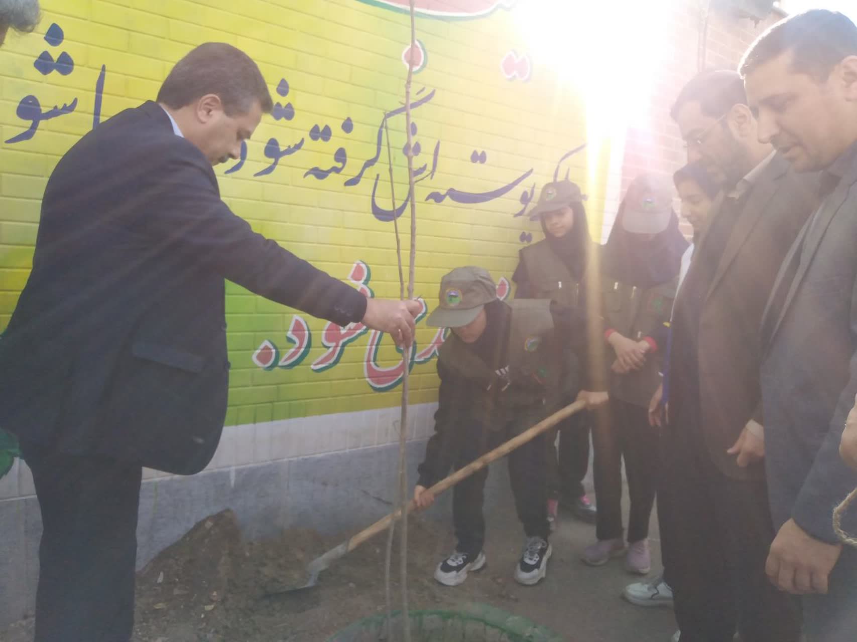 مدیرکل منابع طبیعی و آبخیزداری استان گفت : امروز به همت معلمان و دانش آموزان عزیز این دبستان ، تعداد 7هزار نهال از گونه های بادامشک و زبان گنجشک کاشته و در ادامه به یاد دو شهید والامقام از خانواده فرهنگیان و مادر گرانقدرشهید سردار سلیمانی با حضور مسئولین منابع طبیعی و آموزش و پرورش استان ، سه نهال کاشته شد .